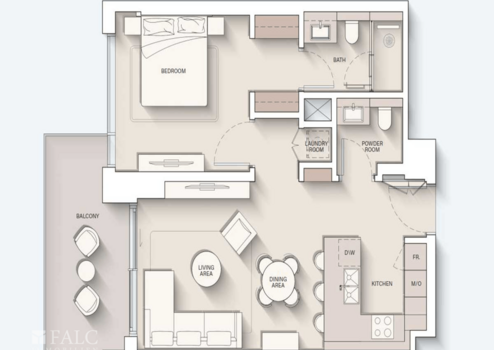 Dieses exklusive 1-Schlafzimmer-Apartment (74,35 m²) bietet eine stilvolle Kombination aus Eleganz und Funktionalität.