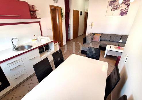 Zum Verkauf steht eine Wohnung von 49,76 m2 mit guter Raumaufteilung. Es besteht aus zwei Schlafzimmern, Wohnzimmer mit Küche und Esszimmer, Badezimmer und Terrasse. Es ist möbliert und ausgestattet, klimatisiert.