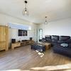 Erdgeschoss: geräumiges Wohnzimmer mit Essbereich und Küche, Flur und ein zusätzliches WC.