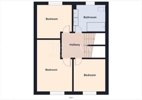Obergeschoss: drei komfortable Schlafzimmer und ein Badezimmer.