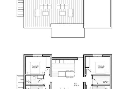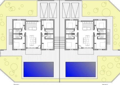 Vorinstallation einer Klimaanlage durch Kanäle im Wohnzimmer und in den Schlafzimmern. Vorinstallation für elektrische Handtuchhalter in den Badezimmern. - Hochenergieeffizientes Wärmepumpensystem für die Warmwasserbereitung.