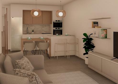 Dies ist ein Komplex neuer Häuser und Wohnung im Bau. Die Wohnungen werden bis zum Sommer 2025 fertiggestellt. Es handelt sich um sehr moderne Wohnungen mit 2 und 3 Schlafzimmern, im Erdgeschoss oder im Penthouse mit Solarium.