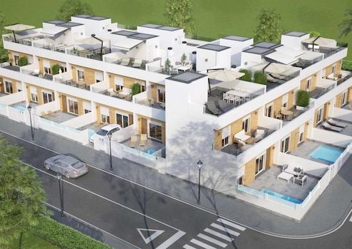 Bei dieser Wohnanlage handelt es sich um einen luxuriösen Komplex aus Doppelhäusern mit privatem Pool, Parkplatz auf dem Grundstück, großen Terrassen und Solarium. Die Häuser befinden sich in Avileses (Murcia) und sind von hoher Qualität und den besten Standards.