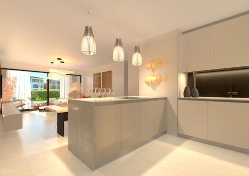 Erdgeschoss-Wohnungen mit 2 Schlafzimmern, 2 Bädern, Einbauküchen mit Elektrogeräten, Klimaanlage und Kfz-Stellplatz nur 150 m vom Hafen