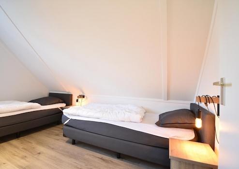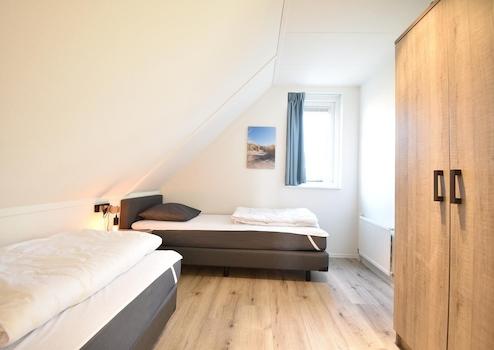 Als Spiegelbild des anderen Zimmers verfügt dieses über zwei Einzelbetten, einen praktischen Kleiderschrank und ein Fenster, das für Tageslicht sorgt. Ein schöner, komfortabler Raum für einen erholsamen Aufenthalt.