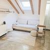 Im ersten Stock befindet sich eine gleich große Zwei-Zimmer-Wohnung mit separatem Seiteneingang und einer 12 m² großen Terrasse mit herrlichem Meerblick. Eine weitere Bereicherung der Wohnung ist die Dachschräge mit Oberlichtern, die für viel Tageslicht sorgen und eine warme, gemütliche Atmosphäre schaffen.