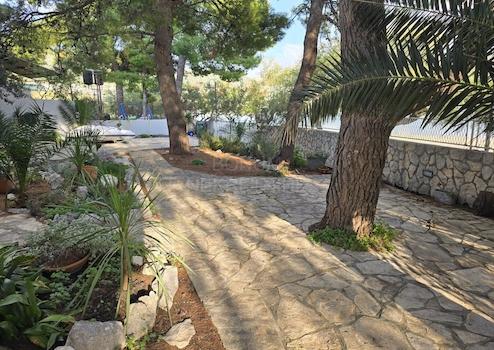 Zum Haus gehören ein 12 m² großer Keller und eine 15 m² große Garage, während der großzügige Garten mit mediterranen Pflanzen, Palmen und Pinien geschmückt ist, die natürlichen Schatten spenden. Die breite, etwa 40 Meter lange Frontlinie des Grundstücks am Meer ermöglicht ein unglaubliches Erlebnis des Küstenlebens.