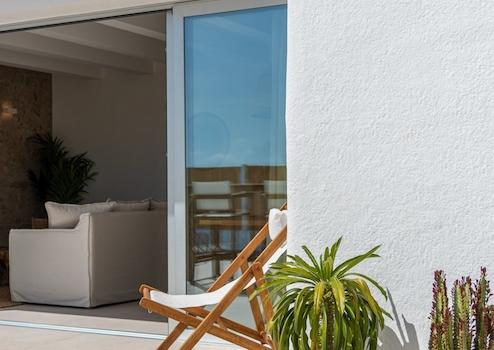 - Außenschreinereiarbeiten aus Aluminium, je nach Ausführung mit Falt- oder Schiebeöffnung, garantieren eine ausreichende Isolierung mit Wärmebrückenunterbrechung.