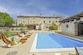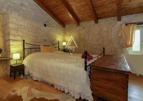 Dieses beeindruckende Steinhaus erstreckt sich über 136 m² Wohnfläche auf drei Etagen und besticht durch ein harmonisches Design mit viel natürlichem Licht und einer warmen, einladenden Atmosphäre. Im Erdgeschoss befindet sich ein offener Wohnbereich mit Küche und Essbereich, der direkt auf die überdachte Terrasse führt, die einen Blick auf den Pool und den großzügigen Innenhof bietet. Eine Holztreppe führt in das erste Obergeschoss, wo sich zwei gemütliche Schlafzimmer mit Doppelbetten und ein Badezimmer mit Dusche befinden.