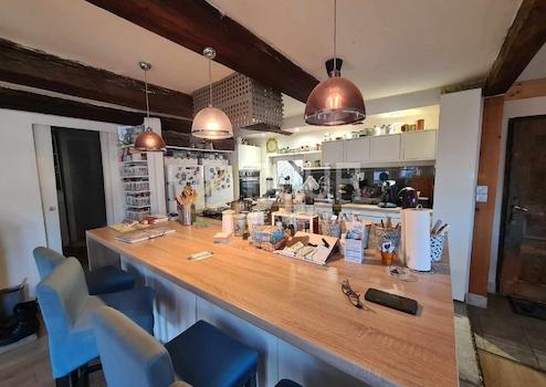 Im hohen Dachgeschoss befindet sich eine möblierte Wohnung, bestehend aus einer Küche mit Esszimmer und einem Wohnzimmer mit Kamin, einem Schlafzimmer, einem Flur, einem Badezimmer.