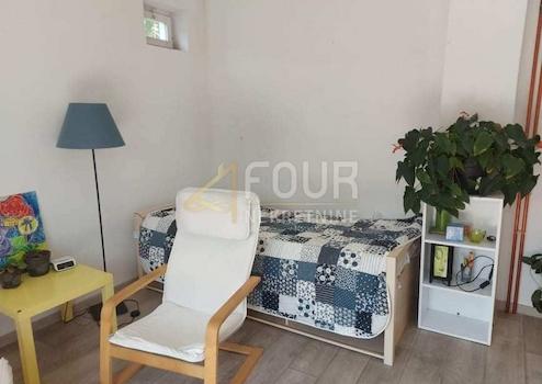 Im oberen Erdgeschoss befindet sich eine Wohnung – zwei möblierte Zimmer, ein weiteres Zimmer für Küche und Wohnzimmer, Flur, Bad und WC.