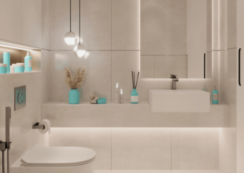 -Luxuriöses Badezimmer mit hochwertigen Materialien und eleganter Ausstattung