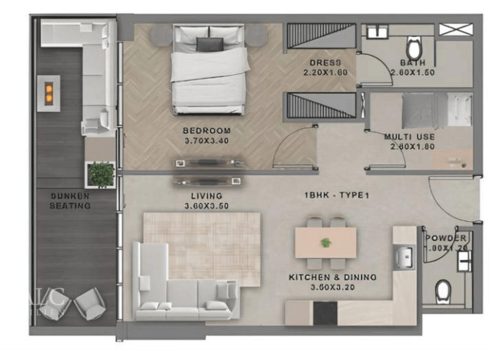 Das 1-Schlafzimmer-Apartment in REEF 999 bietet modernes, luxuriöses Wohnen in einer der begehrtesten Gegenden Dubais. Mit einem durchdachten Design und innovativen Features wie einem klimatisierten, versenkten Balkon setzt dieses Apartment neue Maßstäbe für urbanen Komfort.
