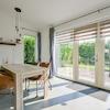 Schönes helles Wohnzimmer mit offener Küche. Vom Wohnzimmer aus haben Sie einen ungehinderten Blick auf die grüne und wasserreiche Umgebung und durch die Gartentüren können Sie direkt zu Ihrem eigenen Liegeplatz gehen.