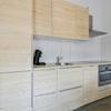 Gepflegte Küche mit Kühl-Gefrierkombination, Induktionskochfeld, Dunstabzugshaube, Geschirrspüler und Backofen.