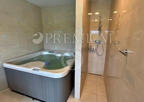 Im Erdgeschoss befinden sich ein SPA-Bereich, ein Maschinenraum, ein Gäste-WC, eine Waschküche, eine Küche, ein Esszimmer und ein geräumiges Wohnzimmer mit Zugang zur Terrasse.