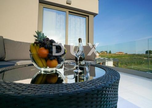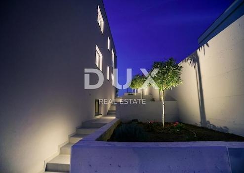 Diese schöne, märchenhafte Villa mit schöner Aussicht befindet sich in der Nähe von Nin an einem ruhigen Ort. Der Eingang zum Anwesen selbst ist beeindruckend. Auf jeder Seite des Eingangs befinden sich überdachte Parkplätze, die "unsichtbar" sind, da das scheinbar einfache Gebäude mit seinen geraden Linien mit seinen Details und Inhalten sofort unsere Aufmerksamkeit auf sich zieht. Am Eingang der Villa befindet sich eine große, überdachte Terrasse zum Essen mit einem schönen Blick auf den Ort, besonders bei Sonnenuntergang ...