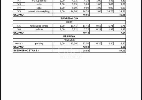 Die gesamte Nettofläche beträgt 57,09 m², dazu gehört ein Parkplatz. (Grundriss in den Bildern sichtbar).