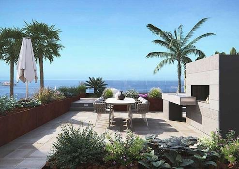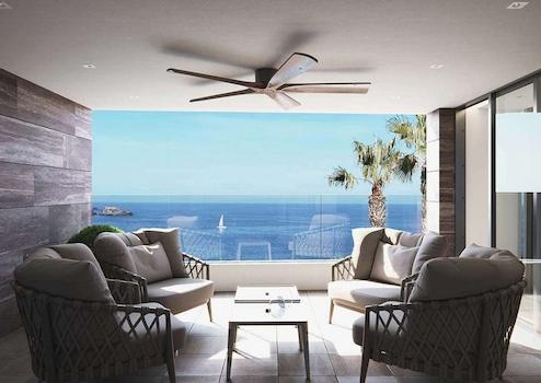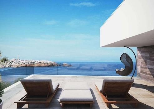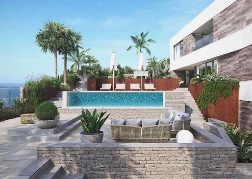 Gärten mit Wasserableitungssystem auf dem Boden, komplett fertiggestellt und anpassbar, einschließlich Vegetation, Bewässerung und Beleuchtung. Whirlpool und Ruhebereich mit Blick auf das Mittelmeer. 10 x 5 Meter großer Pool mit unendlichem Blick auf das Mittelmeer, mit auf-rollbarer und beheizter Abdeckung. Terrassen in verschiedenen Höhen schaffen gemütliche Umgebungen umgeben von Vegetation und endlosen Ausblicken auf das Meer. Geschützte Villa mit TV-Kameras außen und Bewegungsmeldern innen.