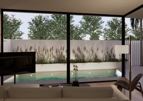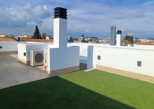 Kunstrasen im Grundstück und Solarium je nach Projekt enthalten.