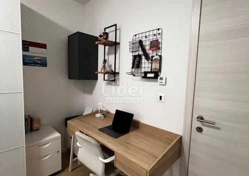 Die Wohnfläche von 88 m2 besteht aus einem offenen Raum mit einem geräumigen Wohnzimmer, einer Küche und einem Essbereich, der zu einer 11 m2 großen Loggia mit unverbaubarem Blick auf das Meer führt. Dieser Wohnbereich ist dank großer Schiebetüren und eines Dreifachfensters lichtdurchflutet, was ihn zu einem sehr angenehmen Aufenthaltsort macht.