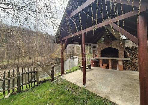 Neben dem Haus befindet sich ein Bach, der durch das Grundstück fließt und dieses Anwesen besonders und idyllisch macht.