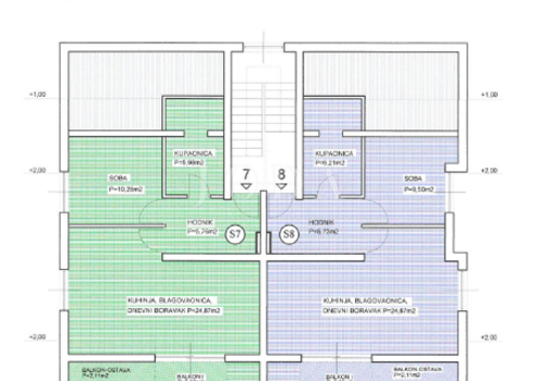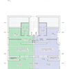 Im Wesentlichen handelt es sich um zwei Wohnungen, die zu einem großen Penthouse verbunden sind, mit drei Schlafzimmern, zwei Bädern und einem großen offenen Raum des Wohnzimmers und der Küche. Große Schiebewände führen auf eine Dachterrasse mit drei Teilbereichen, einer Liegewiese, einem Aufenthaltsbereich und einem Lounge-Bereich.