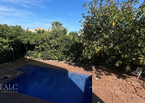 Gemeinschaftspool und Terrasse: Genießen Sie entspannte Stunden am Pool und auf der Terrasse der Wohnanlage.