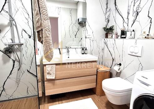 Zum Verkauf steht eine sehr schöne Wohnung in attraktiver Lage in Rešetari, gelegen im ersten Stock eines neu errichteten Wohngebäudes mit insgesamt acht Wohnungen. Sie besteht aus Flur, Wohnzimmer mit Esszimmer und Küche, einem Schlafzimmer, Badezimmer und einem geräumigen Balkon mit wunderschönem Meerblick. Die Gesamtfläche der Wohnung beträgt 55,60 m2, und im Keller befindet sich ein Abstellraum von 3,10 m2, was eine Gesamtfläche von 58,70 m2 ergibt.