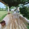 Außen gibt es einen Abstellraum, einen großzügigen Garten mit Grillbereich und Steintisch sowie ein Gerätehaus.
