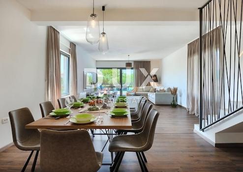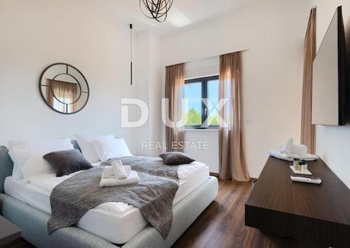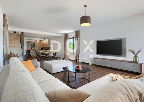 Svetvinčenat, ein wunderschöner Ort im südlichen Zentralteil Istriens, genauer gesagt auf halbem Weg zwischen Pula und Pazin. Ein Ort, der für sein wunderschönes Grün, seine Wälder, Weiden, Weinberge und ein Schloss im Zentrum der Stadt bekannt ist. Die Renaissancestadt Svetvinčenat ist eine der Perlen Istriens mit einem reichen touristischen Angebot und zahlreichen Veranstaltungen, die in den außerordentlich attraktiven historischen Räumen dieser Stadt stattfinden. Das Wahrzeichen der Stadt selbst ist der Renaissanceplatz Placa mit der Burg Morosini-Grimani. Diese besondere Stadt hat eine reiche Tradition und interessante und abwechslungsreiche Programme, von denen das Mittelalterfestival, das Käsefestival, das Tanzfestival und das Festival des nonverbalen Theaters die bekanntesten sind. Nur wenige Kilometer vom Stadtzentrum entfernt befindet sich diese moderne, elegante Villa mit einem großzügigen Garten von 846 m². Fläche 272 m2 verteilt auf Erdgeschoss und Obergeschoss. Das Erdgeschoss des Hauses ist ein offener Raum, der ein geräumiges Wohnzimmer, eine ausgestattete Küche und ein Esszimmer mit ausreichend Platz für zehn Personen umfasst. Im Erdgeschoss befindet sich außerdem ein Schlafzimmer mit eigenem Bad, das Komfort und Privatsphäre bietet. Eine zusätzliche Toilette befindet sich ebenfalls im Erdgeschoss, was eine praktische Lösung für den alltäglichen Gebrauch darstellt. Im ersten Stock der Villa befinden sich vier Schlafzimmer mit eigenem Bad. Jedes Schlafzimmer ist mit Fernseher und Klimaanlage, Moskitonetzen an den Fenstern und Zugang zur Terrasse ausgestattet. Im vollständig gepflegten und eingezäunten Garten befindet sich ein beheizter Swimmingpool (mit Keramik bedeckt), 50 m² groß, der ein vollkommenes Vergnügen in unberührter Natur ermöglicht. Der Pool wird durch Wärmepumpen beheizt. Der Strand rund um den Pool ist mit einer Terrasse bedeckt. Das Haus wird über neun Klimaanlagen beheizt, während die Badezimmer und Schlafzimmer über eine elektrische Fußbodenheizung verfügen. Diese moderne Villa in Svetvinčenat ist die perfekte Kombination aus Luxus und Komfort. 1/1 Eigentum, keine Belastungen.