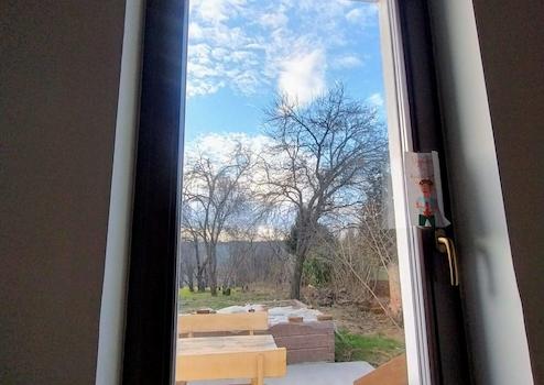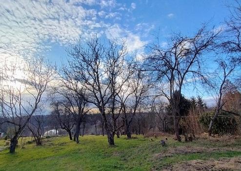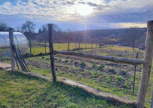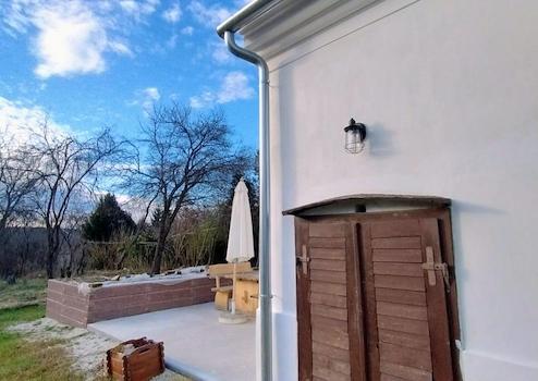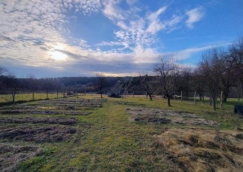 Zum Bild des traditionellen Őrség-Bauernhauses gehört auch der Obstgarten hinter dem Haus, der mit fruchttragenden Pflaumen- und Apfelbäumen bepflanzt ist. Wenn Sie von hier aus weitergehen, kommen Sie zu einer riesigen Akazie, die von einem Wildnetz umgeben ist, ca. Wir gelangen zu einem 400 m² großen, sorgfältig gepflegten Nutzgarten. Das Gebiet geht in einen sanft abfallenden Hang über, der sich bis zum Bach im Tal erstreckt.