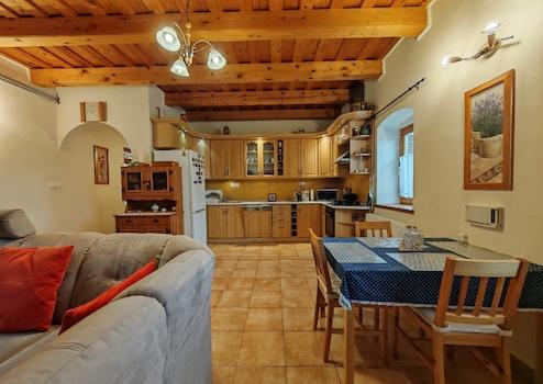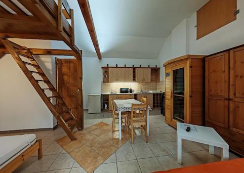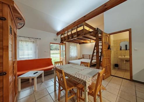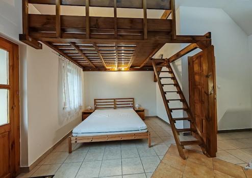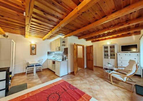 Az 1. apartman 32 m², saját fürdőszobával, külön WC-vel. Két főnek ideális, de további két fő elhelyezése is megoldható pótággyal.