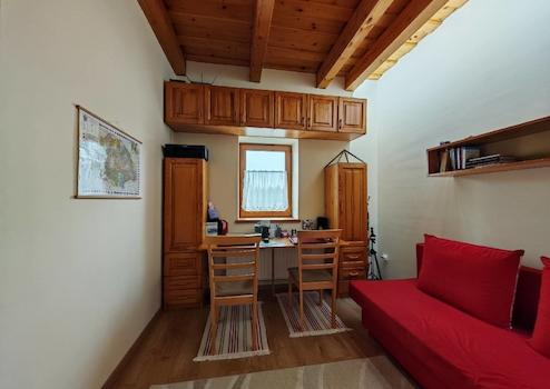Apartment 1 ist 32 m² groß und verfügt über ein eigenes Bad und eine separate Toilette. Es ist ideal für zwei Personen, bietet aber mit einem Zustellbett auch Platz für zwei weitere Personen.