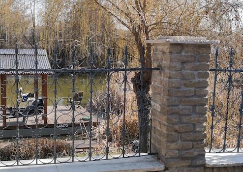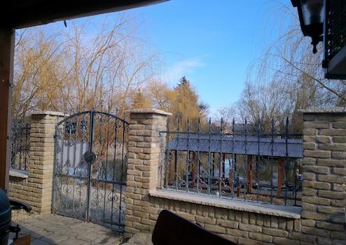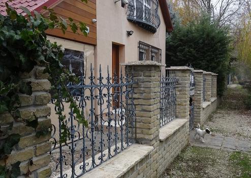 Duna felé „régi” tégla kerítés kovácsoltvas elemekkel.