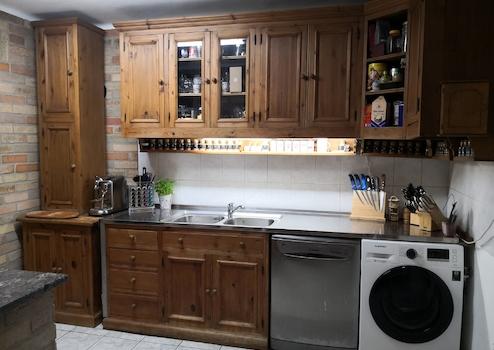 Konyhabútor fenyőfából, rozsdamentes munkalappal