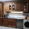 Küchenmöbel aus Kiefernholz mit Edelstahlarbeitsplatte