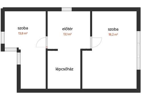 45 m2 emelet {2 szoba, előtér} tölgy svédpadlóval