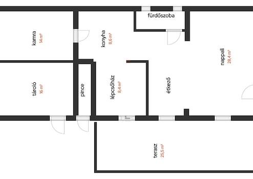 + konyhából nyíló 14 m2 spejz