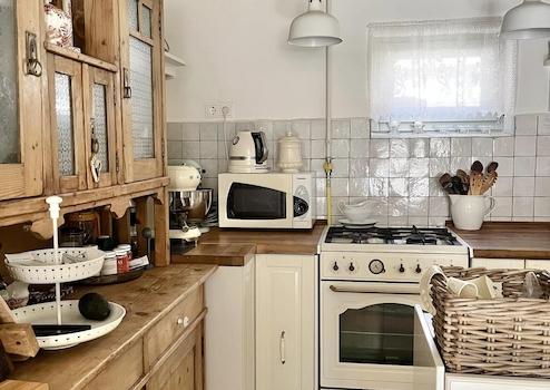 Az épület minden közművel rendelkezik. A használati melegvizet és a fűtést kondenzációs gázkazán biztosítja. A hőleadás minden helyiségben radiátorokkal történik, ezen felül egy cserépkályha és egy öntöttvas kandalló is fokozza a téli hónapok bekuckózós hangulatát.