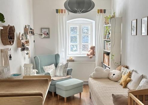 - Flur, Bad und Küche sind mit Zementfliesen ausgelegt, Schlafzimmer und Wohnzimmer mit Laminat. Im Bad und in der Küche wurden Azulejo-Fliesen verlegt, die als Souvenir aus Lissabon mitgebracht wurden.