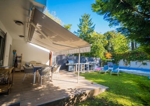 A hátsó kertrészben egy nemrég épített sós vizű medencében csobbanhatunk a nyári, melegben vagy akár hűvösebb napokon, mivel hőszivattyús fűtéssel rendelkezik.