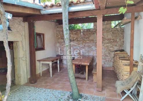 Im Erdgeschoss befinden sich zwei Zimmer, eine Küche und ein Weinkeller mit einem Steingewölbe. Vor dem Haus befindet sich ein großer, von einer Steinmauer umgebener Innenhof, der absolute Privatsphäre bietet. Es gibt auch eine Außentoilette.