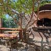 Im 450 m2 großen Garten, in dem nur einheimische mediterrane Pflanzen wachsen, gibt es eine überdachte Terrasse mit Grill, Holztisch und Bänken, die auch in den heißesten Zeiten ein angenehmes Beisammensein ermöglicht. Neben dem Innenhof, der Taverne und der überdachten Terrasse gibt es noch einen 150 m2 großen Garten mit Obstbäumen und einen Privatparkplatz vor dem Haus.