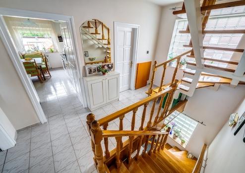 Dieses schöne dreistöckige Einfamilienhaus befindet sich im Vorortgebiet von Pilisvörösvár und wurde auf einem 586 m2 großen Grundstück gebaut. Das Haus verfügt über 230 m² Wohnfläche mit fünf Voll- und zwei Halbzimmern und ist somit ideal für größere Familien. Die Bausubstanz des Hauses besteht aus B30-Ziegeln. Das Dach ist mit Ziegeln gedeckt, was nicht nur ästhetisch, sondern auch langlebig ist und langfristigen Schutz vor Witterungseinflüssen bietet.