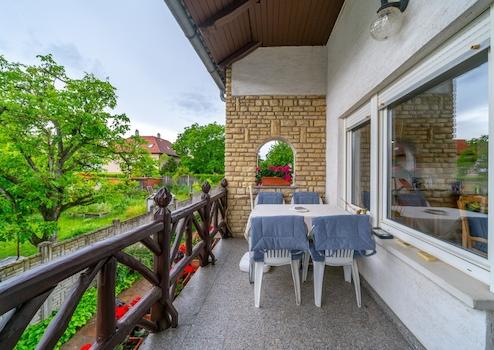 Az ingatlan különlegességei közé tartozik még két erkély, ahonnan gyönyörű kilátás nyílik a környező tájra, és amelyek ideálisak egy kellemes reggeli kávé elfogyasztásához vagy esti pihenéshez. A telek végében található egy 80 négyzetméteres műhely is, amely tökéletes lehet hobbi célokra vagy akár kisebb vállalkozás működtetésére. A kertben található szaletli alatt nagyobb baráti társaságok is kényelmesen elférnek, így remek helyszín lehet családi és baráti összejövetelekhez.