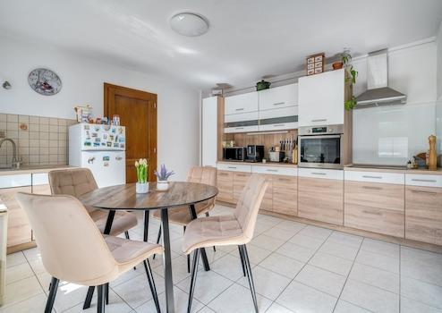 Wir bieten zum Verkauf ein Einfamilienhaus aus den 1960er Jahren mit einer Wohnfläche von 135 m2 an, das auf einem 735 m2 großen Grundstück liegt. Die Dachbalken und Fenster des Gebäudes wurden vor 5 Jahren renoviert. Die Beheizung des Hauses erfolgt über einen Mischbrennstoffkessel, einen Rundkessel, Elektroheizpaneele und eine Kühl-Heiz-Klimaanlage.