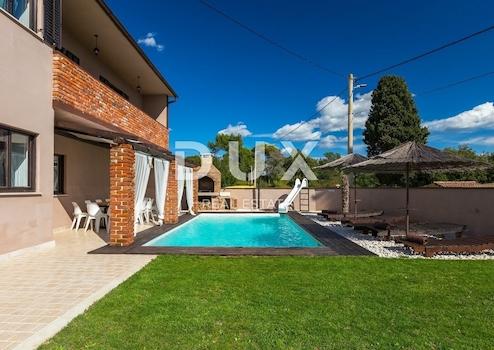 In einem kleinen und ruhigen malerischen Dorf, ideal für das Familienleben oder den Urlaub, befindet sich diese gemütliche Villa mit insgesamt 250 m² Wohnfläche, aufgeteilt auf zwei Etagen. Dies ist eine hochwertige Familienvilla, die ihren zukünftigen Besitzern Ruhe und Privatsphäre bietet. Mit ihrer Lage bietet diese Villa alles, was für einen sicheren und ruhigen Aufenthalt erforderlich ist, und befindet sich dennoch in unmittelbarer Nähe zu allen Annehmlichkeiten, die für ein sicheres und friedliches Familienleben erforderlich sind. OBJEKTBESCHREIBUNG: Im Erdgeschoss der Villa befindet sich eine Eingangshalle mit Garderobe, die uns in den Bereich für das tägliche Leben führt, wo sich eine voll ausgestattete Küche mit einem geräumigen Essbereich und einem gemütlichen Wohnzimmer befindet. Vom selben Raum aus gibt es einen Ausgang zum Außenbereich der überdachten Sommerterrasse mit Zugang zum Garten und Swimmingpool. Im Erdgeschoss der Villa befinden sich außerdem 3 Schlafzimmer und 2 Badezimmer, die in einem privateren Bereich getrennt sind, sowie eine Gästetoilette. Über eine Innentreppe gelangt man in den ersten Stock der Villa, wo sich 3 weitere Schlafzimmer und 2 Badezimmer befinden. Auf derselben Etage haben Sie die Möglichkeit, im Wellnessbereich zu entspannen, der eine Sauna und einen Bereich für Pilates-Übungen umfasst. Was das Obergeschoss der Villa zusätzlich schmückt, ist eine größere überdachte Terrasse mit Whirlpool, die ebenfalls einen schönen Blick auf die Landschaft bietet. BESCHREIBUNG DES GARTENS: Die Villa befindet sich auf einem 587 m² großen Grundstück. Wenn wir die Fläche abziehen, die die Villa und der Pool einnehmen, bleiben komfortable 375 m² angelegter Garten übrig. Der Innenhof der Villa ist vollständig von einer Mauer umgeben und bietet somit sicheren Platz für Spaß und Entspannung mit Familie und Freunden. Der Zugang zum Garten durch das Tor bietet 3 Parkplätze für Ihre Haustiere, die nach Ermessen der zukünftigen Besitzer überdacht werden können. Den zentralen Teil des Hofes nimmt ein 30 m² großer Swimmingpool mit Sonnenbereich und Liegestühlen ein. Um die jüngsten Familienmitglieder und Haustiere müssen Sie sich keine Sorgen machen, denn im Hof gibt es genügend Grünflächen zum unbeschwerten Spielen. Der mit natürlichen mediterranen Pflanzen geschmückte Garten macht die Zeit im Freien zu etwas Besonderem und bietet ausreichend Privatsphäre. ZUSÄTZLICHE INFORMATIONEN: * Das Haus ist mit einer Pellets-Zentralheizung und einer Klimaanlage auf jeder Etage ausgestattet. * Wird möbliert verkauft, wie auf den Bildern zu sehen. * Der Besitz ist in Ordnung und verfügt über alle notwendigen Unterlagen. * Durch die geschickte Ausrichtung der Villa werden alle Räume mit natürlichem Licht versorgt, was den Aufenthalt deutlich angenehmer macht. Die Villa liegt am äußersten Rand einer kleinen Siedlung und ist somit ideal für alle, die einen sicheren und ruhigen Ort für ihre Familie oder als Investitionsmöglichkeit in Form von Tourismus suchen.