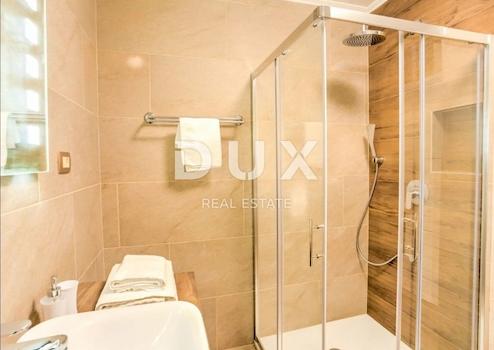 In einem Sonderangebot von DUX Real Estate steht eine moderne und geräumige Doppelhaushälfte mit 210 m² Wohnfläche, Swimmingpool, Garage, Terrasse und Garten zum Verkauf. Das Haus erstreckt sich über drei Etagen und bietet einen wunderschönen Blick nach Westen. Es ist geschmackvoll eingerichtet und für umfassenden Komfort ausgestattet. Das geräumige Wohn- und Esszimmer (70 m²) verfügt über Sat-TV, DVD-Player, Holzofen, Klimaanlage und Zugang zum Garten, Balkon und Pool. Die offene Küche ist komplett ausgestattet mit Backofen, Geschirrspüler, Cerankochfeld, Mikrowelle, Gefrierschrank und Kaffeemaschine. Im Erdgeschoss befindet sich ein zusätzliches Wohnzimmer mit Essbereich (35 m²), Fernseher und Zugang zu einem großzügigen Garten und einer Terrasse. Die Schlafzimmer sind mit bequemen Doppelbetten ausgestattet, eines der Zimmer verfügt über zwei Einzelbetten. Alle Zimmer haben Zugang zu Balkonen mit herrlicher Aussicht auf den Pool und die grüne Umgebung. Das Haus bietet vier Badezimmer mit Dusche oder Badewanne und ist für zusätzlichen Komfort klimatisiert und mit einer Fußbodenheizung ausgestattet. Zu den Außenbereichen gehören drei geräumige Balkone (35 m², 52 m²) und eine Terrasse (22 m²) mit Möbeln und Sonnenliegen. Kostenloses WLAN und eine Waschmaschine stehen zur Verfügung. Eine Garage für zwei Autos bietet sicheres Parken. Dieses wunderschöne Haus befindet sich an einem völlig privaten Ort, ohne Nachbarn, umgeben von hohen Bäumen und Natur und bietet absolute Ruhe und Privatsphäre. Es bietet die perfekte Umgebung zum Entspannen und Genießen der Natur und ist ideal für Familien, die Luxus mit Blick auf den Pool und den Wald suchen. Die Fahrt nach Opatija dauert nur vier Minuten. Zur Vereinbarung einer Immobilienbesichtigung rufen Sie einen Makler Ihres Vertrauens an – Beratung auch auf Deutsch möglich.