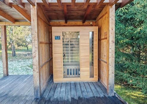 Der Garten verfügt über eine überdachte Terrasse, die ein idealer Ort für Grillabende und Treffen mit Freunden ist. Zu den weiteren Besonderheiten des Anwesens zählen eine Infrarotsauna und ein 3 m³ großes, holzbefeuertes Wannenbad, das für ein unvergessliches Wellnesserlebnis im Einklang mit der Natur sorgt. Diese Komfortelemente verbinden perfekt die Ruhe des Landlebens mit modernen Freizeitmöglichkeiten.